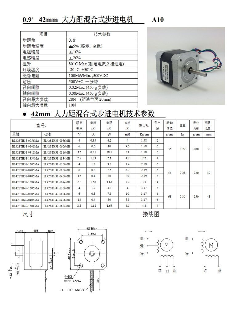 | 0.9°42mm兩相大力距混合式步進電機 |